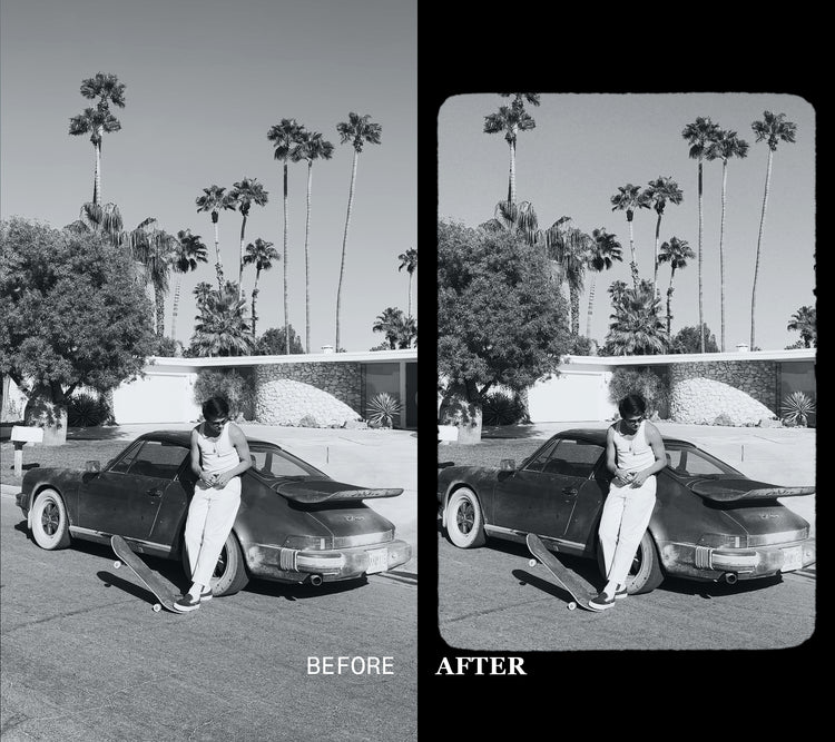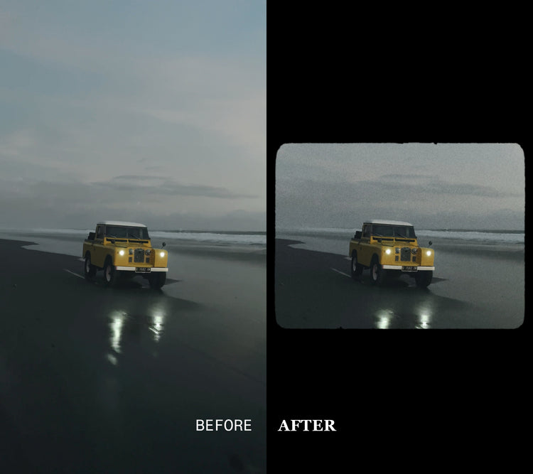 Drag and drop grain overlays inspired by 8mm, 16mm & 35mm film stock. Film gates created using real film scan for that authentic look.